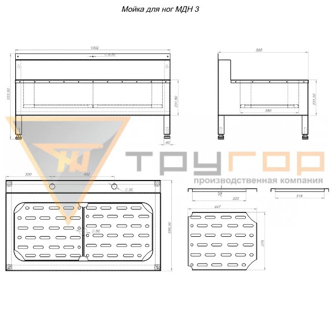 Мойка для ног двухместная со съемными решетками из нержавеющей стали предназначена для установки в санитарных или бытовых помещениях.